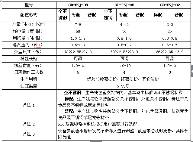 7、一機多能。生產線通過增減配置可以生產不同的原料,如馬鈴薯水晶粉絲、紅薯黃金粉絲、方便粉絲等。